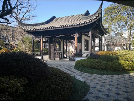 中式园林风格简介:中式园林充分体现着天人合一的理念,在造园技法上是模拟自然而高于自然,即"虽由人作,宛自天开"。苏州玫瑰园亭台参差,廊榭交错,流水自然曲折,树木葱郁,显示出清幽典雅的文化底蕴与自然和谐的意境。这些建筑,与天、地、自然环境相吻合,同时又使园内各部分自然相接,达到了移步换景、渐入佳境、小中见大的观赏效果。