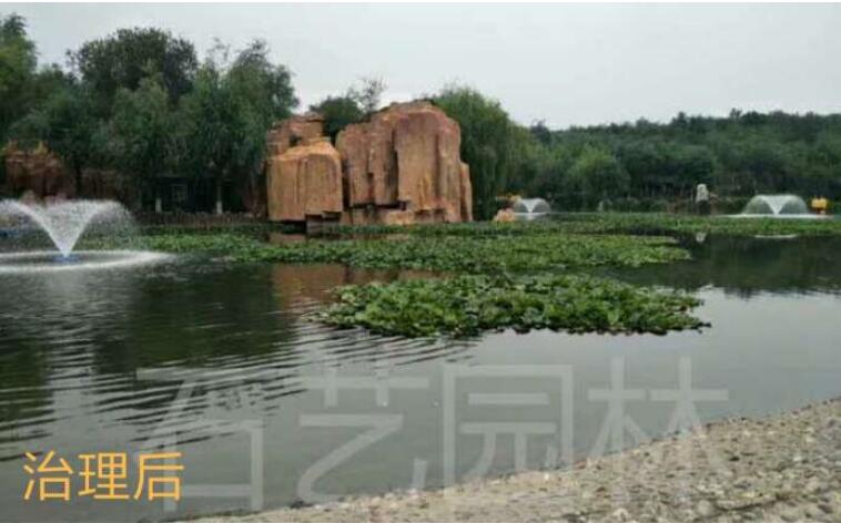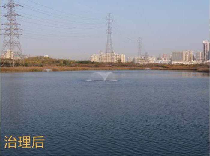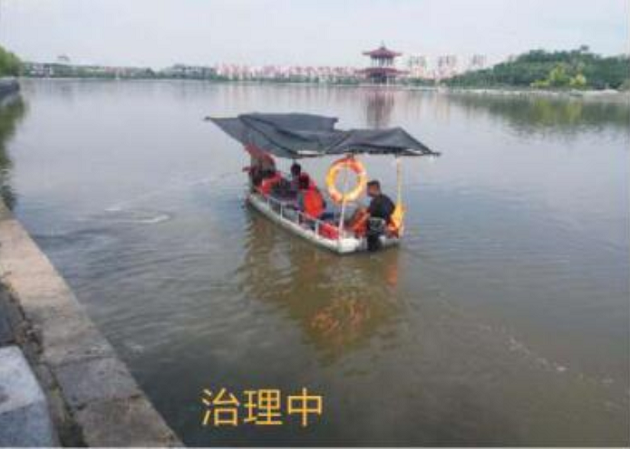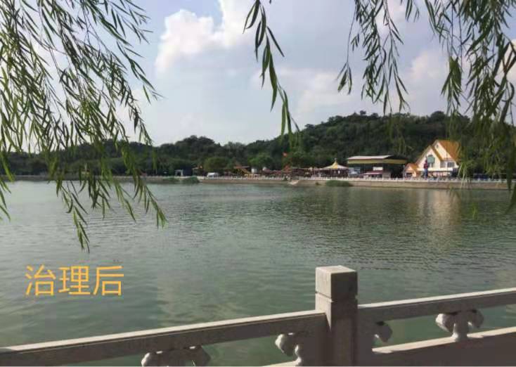 项目内容:湖面面积约3万平方米,水深1.5米,湖水容量约4.5万方,由于公园补水较少,加上底泥不断积累,夏季温度高时,水体严重富营养化,水华爆发频繁发生,死亡的藻类使水体发黑发臭,严重影响了游客的游园活动。经过治理后水体景观恢复,水体透明度提高,减轻异味,提升水质。
